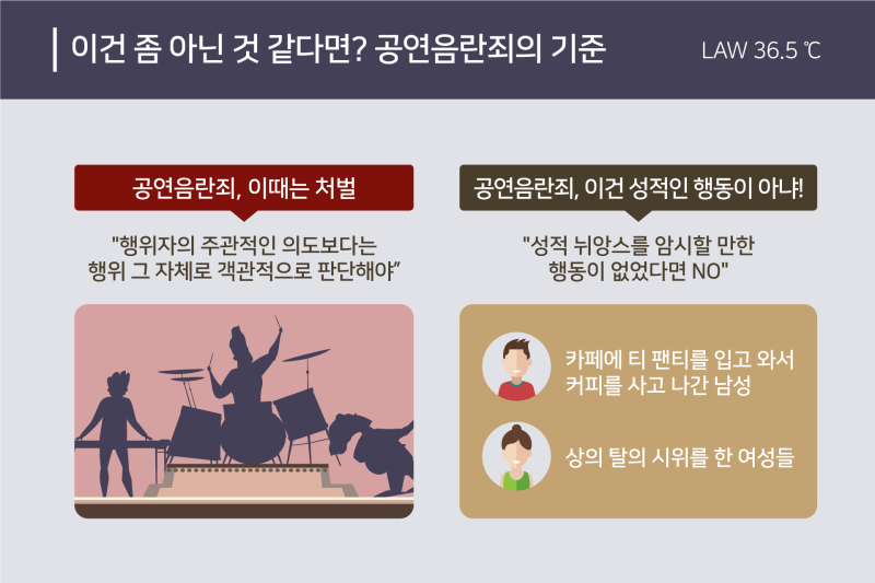 위 사건의 범인과 같이 공개된 장소에서 자신의 신체를 노출하는 사람을 다른 말로 바바리맨이라고도 부르죠. 우리 법은 이러한 행위를 한 자를 ‘공연음란죄’로 처벌합니다.이 외에도 집 베란다와 같이 지나가는 사람이 볼 수 있는 공간에서 노출을 하거나 노상방뇨를 하는 것 공공장소에서 이러한 불법 행위를 한 것을 SNS에 올리는 것 또한 본죄로 처벌을 받을 수 있는데요.최근 <법무법인 새로>에도 이와 같은 문제로 찾아오셨던 의뢰인이 있어 오늘 글을 준비했습니다. 저 엄진 서초역형사변호사는 무고한 혐의를 입은 의뢰인을 도와 무죄 판결을 이끌어냈는데요. 그 자세한 내용을 바로 살펴보겠습니다.