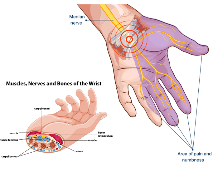 손목터널증후군은 손목의 정중신경이 압박되어 발생하는 고통스러운 의학적 상태입니다. 반복적인 움직임이나 손의 과도한 사용으로 인해 발생하는 경우가 많습니다. 정중 신경 손상은 근로 연령층의 여성에게서 주로 발생합니다. 정중신경은 엄지, 검지, 중지, 약지에 감각과 움직임을 제공하는 얇은 신경입니다. 의사는 정중 신경의 압력과 염증을 완화하여 수근관 증후군을 치료합니다. 또한 손목과 손 근육을 강화하여 정중 신경에 가해지는 압력을 줄이는 운동을 권장할 수도 있습니다.