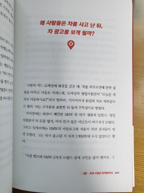 내 제품이 왜 안 팔리는지 읽으면서 정신을 차릴 수 있었던 시간이었습니다. 되돌아보면 모든 것이 사실이라는 사실이 놀랍습니다. 모든 사업은 마케팅이다. 2장은 정말 스릴 넘쳤던 것 같아요.
