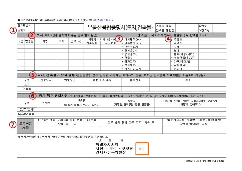 종합부동산증명서를 열람하면 토지표시, 소유자 관련 사항, 건물 표시, 토지이용 및 규제, 부동산 가격 등 전반적인 정보가 관리시스템을 통해 기록, 저장됩니다. 즉, 부동산기록의 전부 또는 일부에 관한 증명서라고 할 수 있습니다.