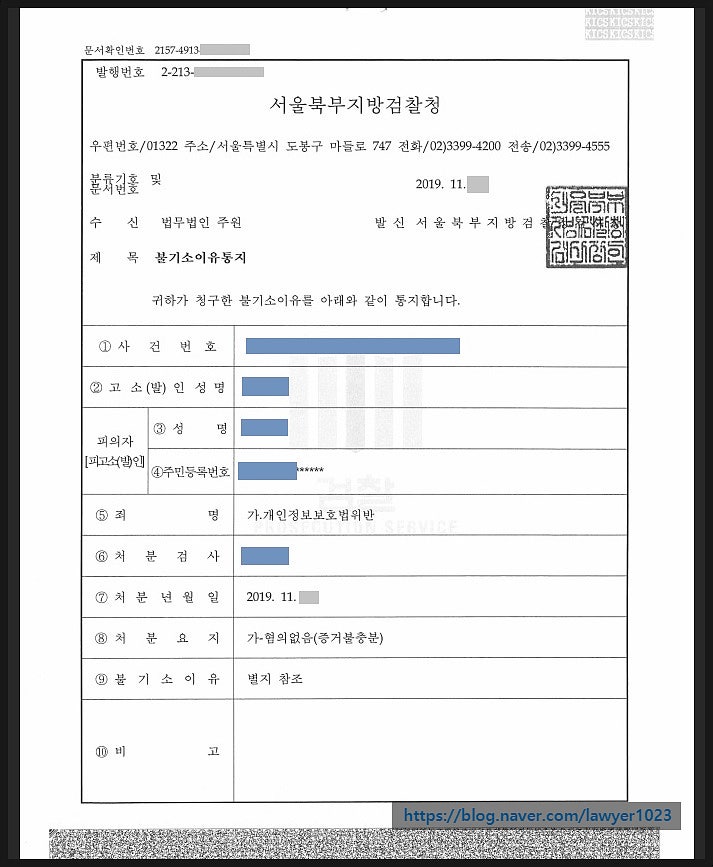 김동우 변호사는 경찰서 자문 경력이 있는 만큼 수사기단계에서 최선의 조력을 하였고, 그 결과 불송치 결과가 나왔습니다. 이에 대해 검찰에서 보완수사 등을 이유로 검찰에 송치하였는데요.A&Lab 대표변호사는 우리 의뢰인이 개인정보보호법위반에 있어서 1) 해당 영상에서 고소인 B씨의 모습이 나오지 않는 다는 점 2) 같이 송치된 피의자들 또한 개인정보 처리 담당자라는 점 3)영상에 나오는 당사자로부터 열람에 관한 대리권을 부여받았다는 점 을 변호인의견서에 구체적으로 정리하여 담당 검사에게 제출하였습니다.그 결과 대구지방검찰청 안동지원은 변호인의 주장을 인정하여, 개인정보법위반 무혐의 처분으로 사건을 종결하였습니다.